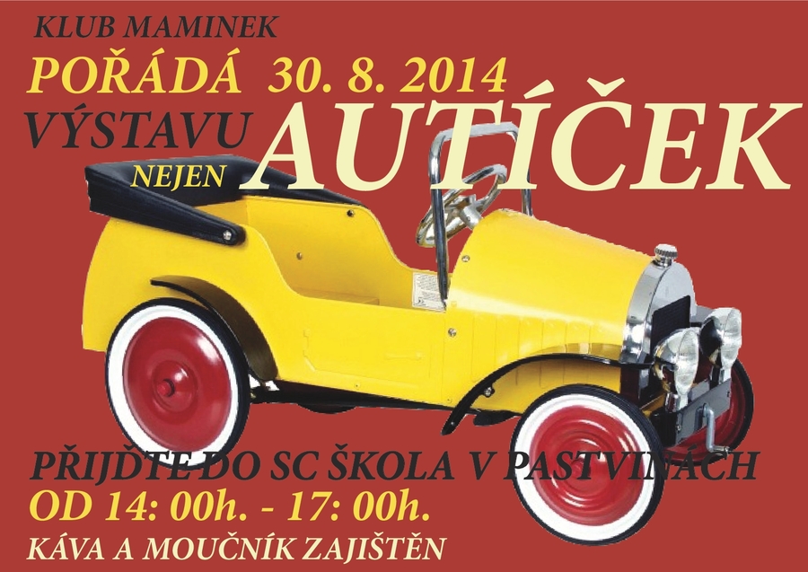 Výstava autíček pastviny - plakátKlub maminek a Společenské Centrum ŠKOLA Pastviny si Vás dovoluje pozvat na VÝSTAVU AUTÍČEK a především hraček klučičích!